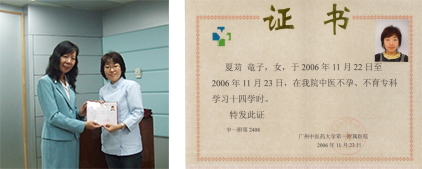 2003年から毎年中国各地の中医薬大学附属病院で不妊症の研鑽を重ねてきたから事も評価されたのでしょう。