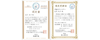日本不妊カウンセリング学会の認定不妊カウンセラーの更新証が届きました。